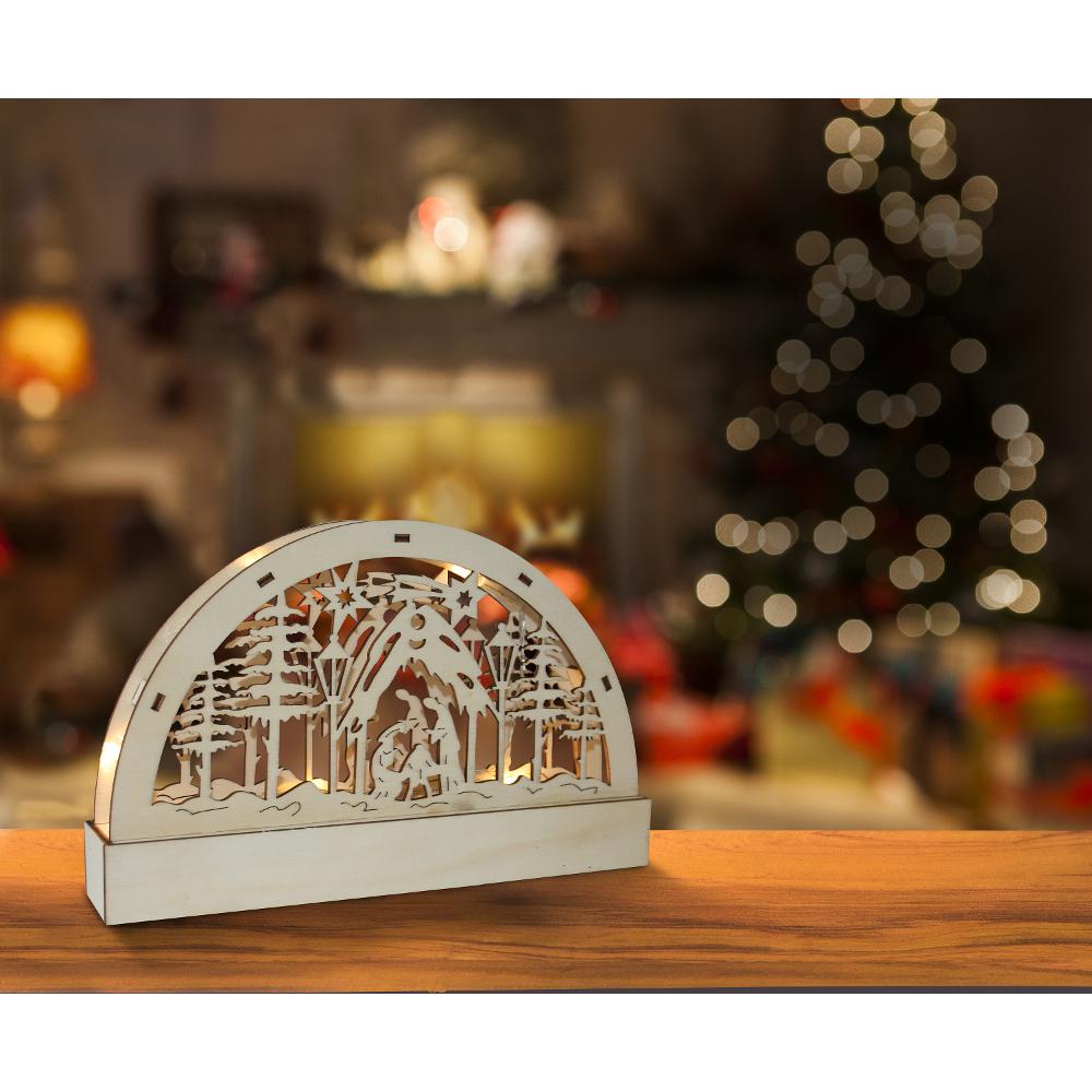 Wooden backlit nativity crib - silhouette