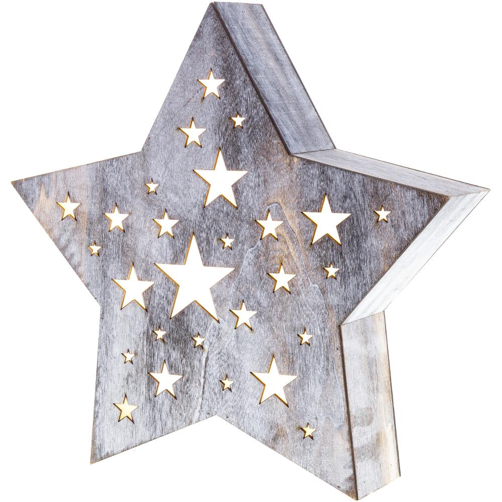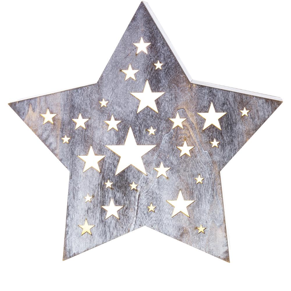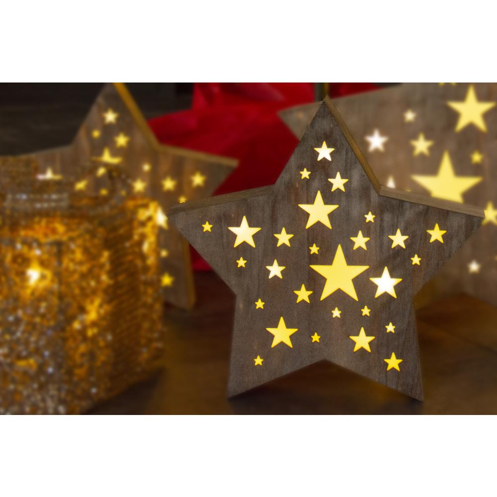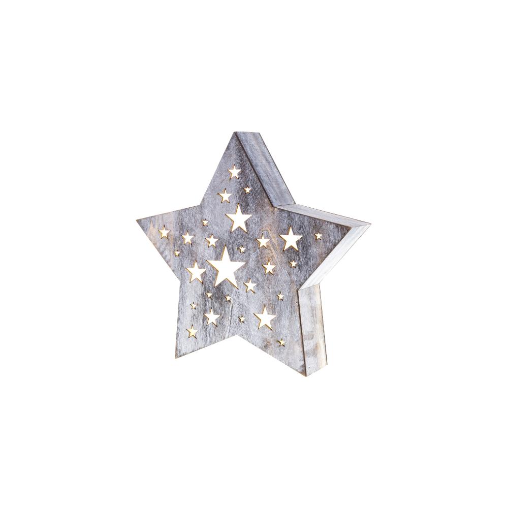 Christmas Decoration - wooden star with perforations of star-shape