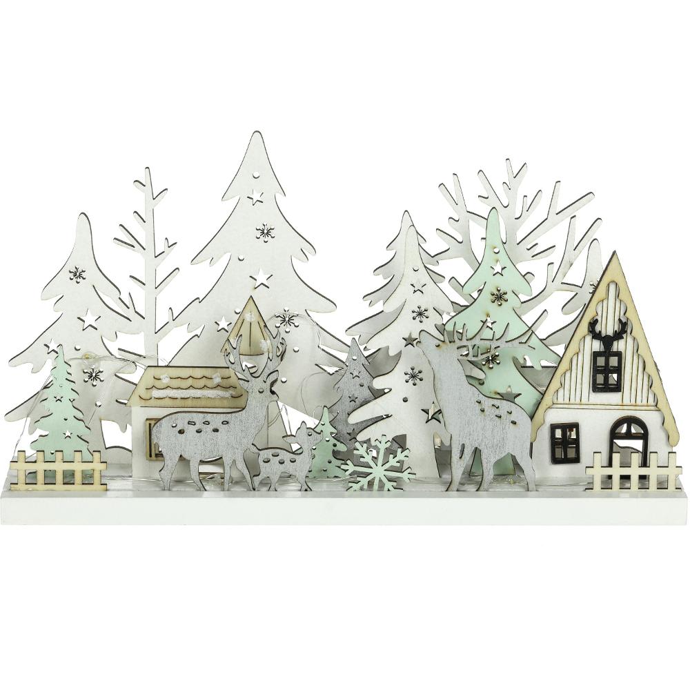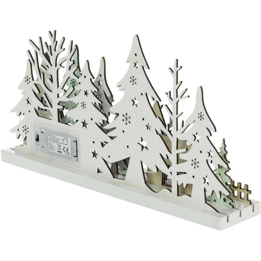 RXL 466, wooden Christmas decoration in the form of a snowy winter forest, brings the beauty of nature right into your home. You can enjoy various deer, trees and a picturesque lodge in your home or apartment. The lighting is provided by 15 LED lights in a pleasant warm white colour. Thanks to its dimensions of 33 x 5.8 x 16.5 cm, it will easy find its place and become an unmissable accessory.