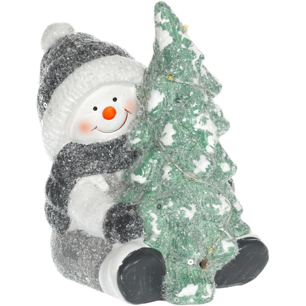 Světelná dekorace MAGNEZITOVÝ SNĚHULÁK SE STROMKEM