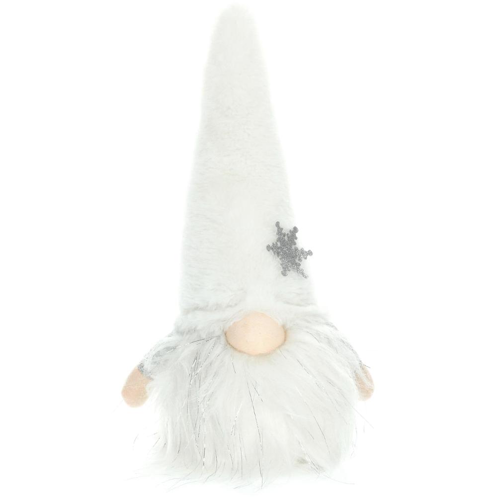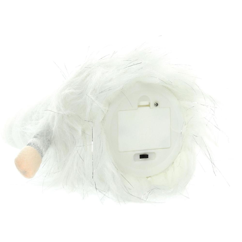The white textile gnome with a glowing beard. The beard shines with 1 LED in warm white colour. Size 15 x 12 x 27 cm. 3 AAA batteries not included. Use only indoor.