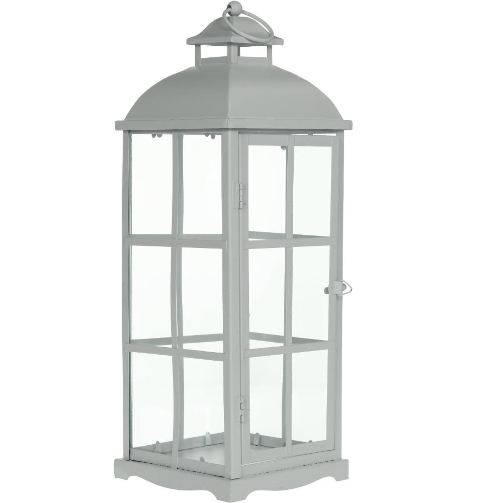 The white metal lantern with plastic windows could be used with the LED or the wax candle. Size 12,5 x 12,5 x 36,5 cm. For indoor and outdoor use.
