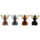 4 beautiful angel ornaments. Honey Comb angels have gold glitters on the edges. The set includes ornaments in four colors black, gold rose,mustard and silver.Use only indoor.
