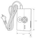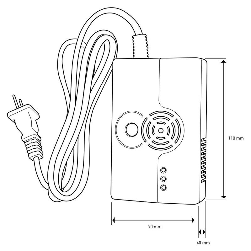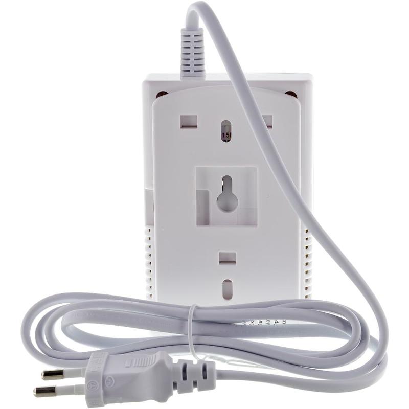 The gas detector also serves as a GSM alarm with integrated siren. It detects the presence of LP gas (propane-butane), coal gas and natural gas, noise level 85db/3m.