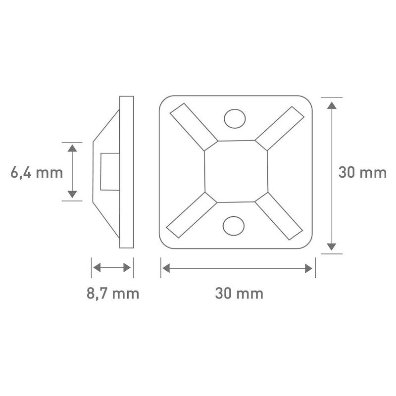 Self-adhesive fitting for zip ties, fitting dimensions 30x30mm, package contains 50 units
