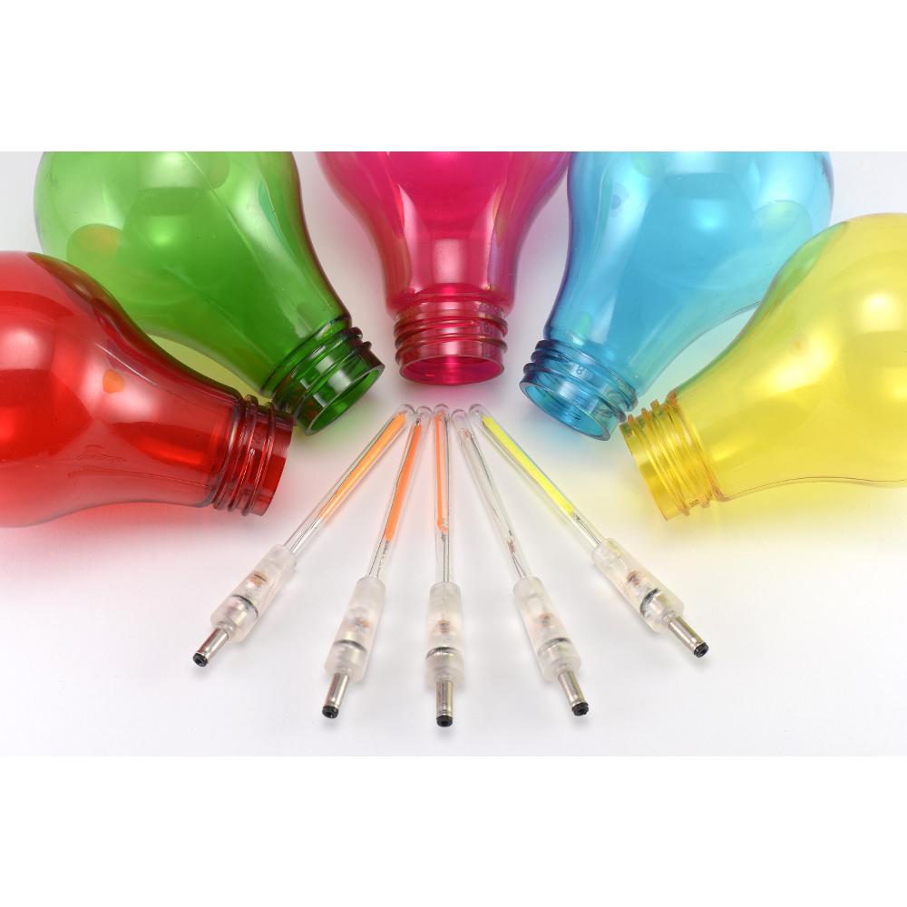 There’s no need to worry. I produce light using special LED filaments that are easy to replace and safe above all. They are covered with plastic caps that withstand a fall on the ground and make the bulbs cold to the touch. You can easily replace the LED filaments. The hollow connectors make it absolutely safe and easy.