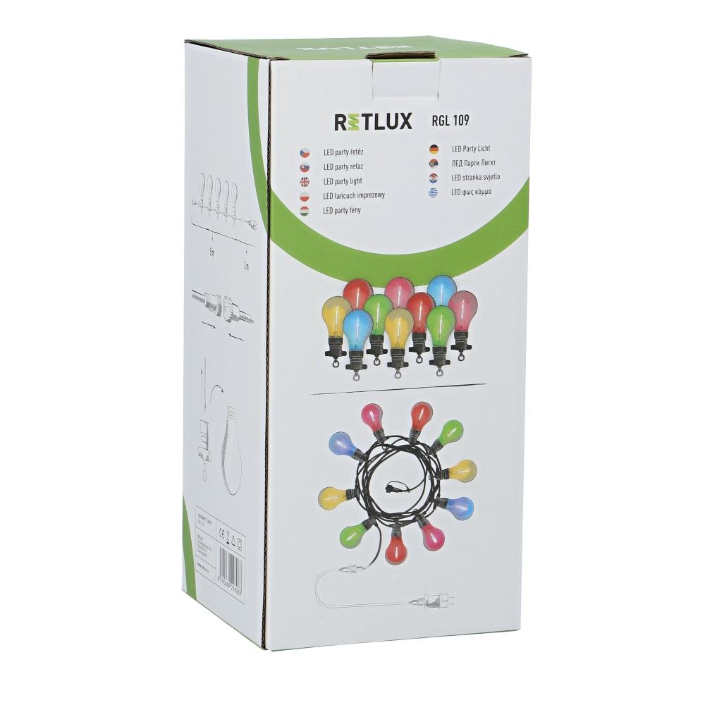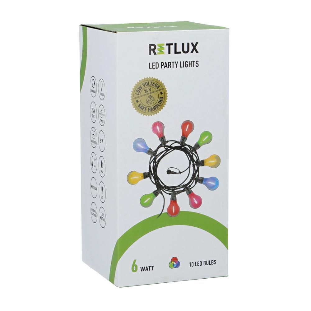 I am a new Retlux party chain that will bring light to your party! I can cast an amazing party within seconds. I come in two colour versions, multicolour and plain white, which you can combine as you please. I am protected with IP44 so it’s no problem for me to stay outside. I can withstand anything.