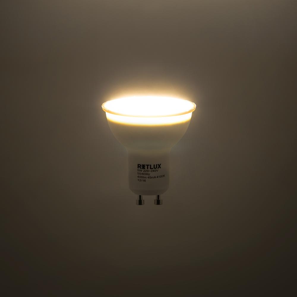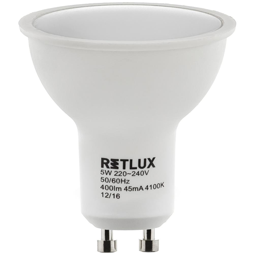 The Retlux reflector LED bulbs for the GU10 socket are most often used in false ceilings, spot lights and bathrooms. They are smaller bulbs that reliable enlighten a minor area or a larger room when multiple are used. You can choose from several versions, 3 W to 9 W, representing 25 W to 50 W in incandescent bulbs.