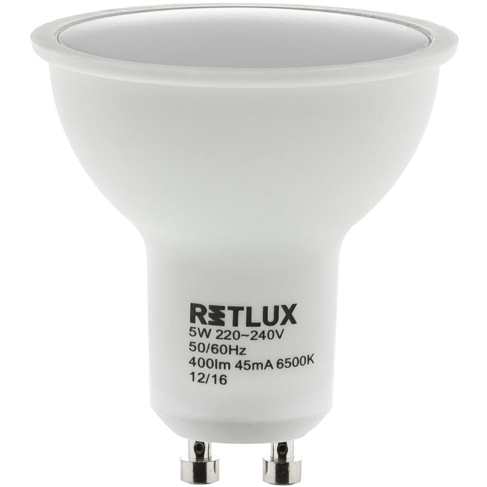 The Retlux reflector LED bulbs for the GU10 socket are most often used in false ceilings, spot lights and bathrooms. They are smaller bulbs that reliable enlighten a minor area or a larger room when multiple are used. You can choose from several versions, 3 W to 9 W, representing 25 W to 50 W in incandescent bulbs.
