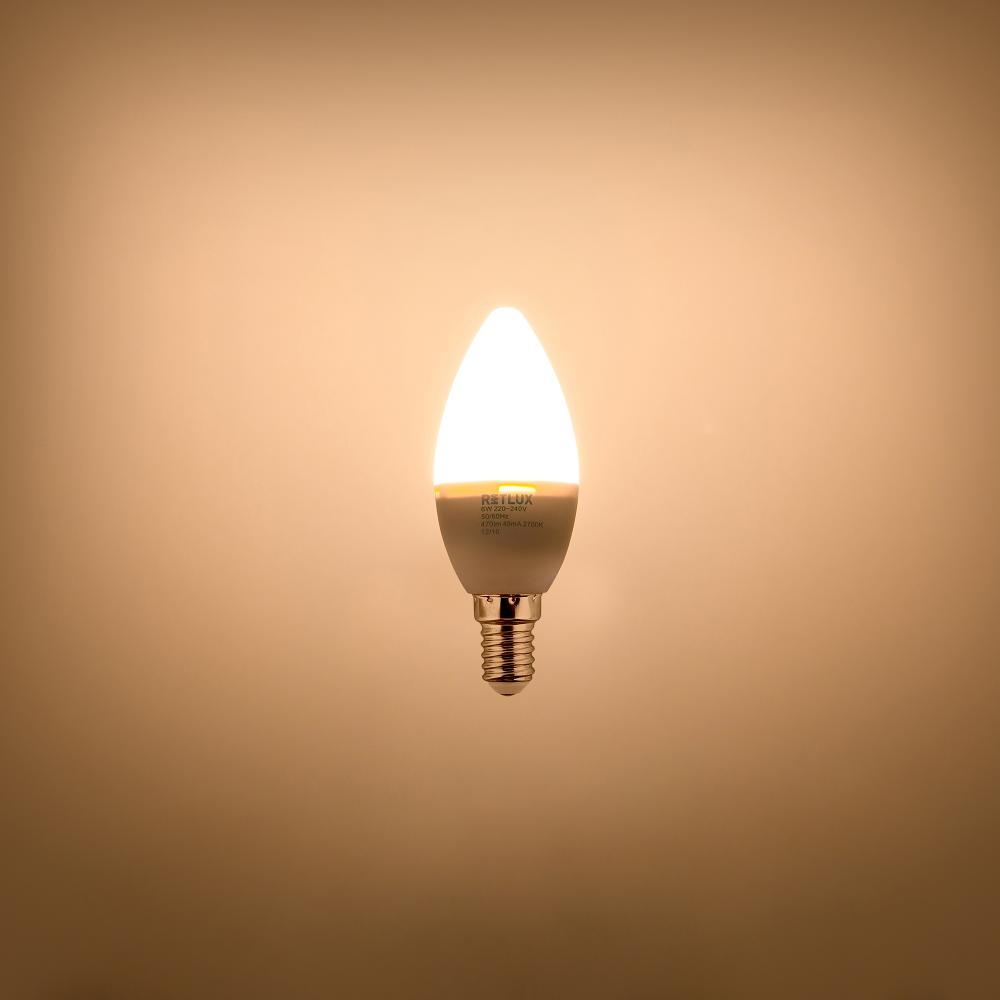 Candle-shaped bulbs are great for use in decorative chandeliers, suspended lights and lamps. While their design is time-tested, they have made technological progress. The Retlux LED bulbs for the E14 socket consume less energy than their predecessors. They also feature long lifetime amounting to dozens of thousand of hours.