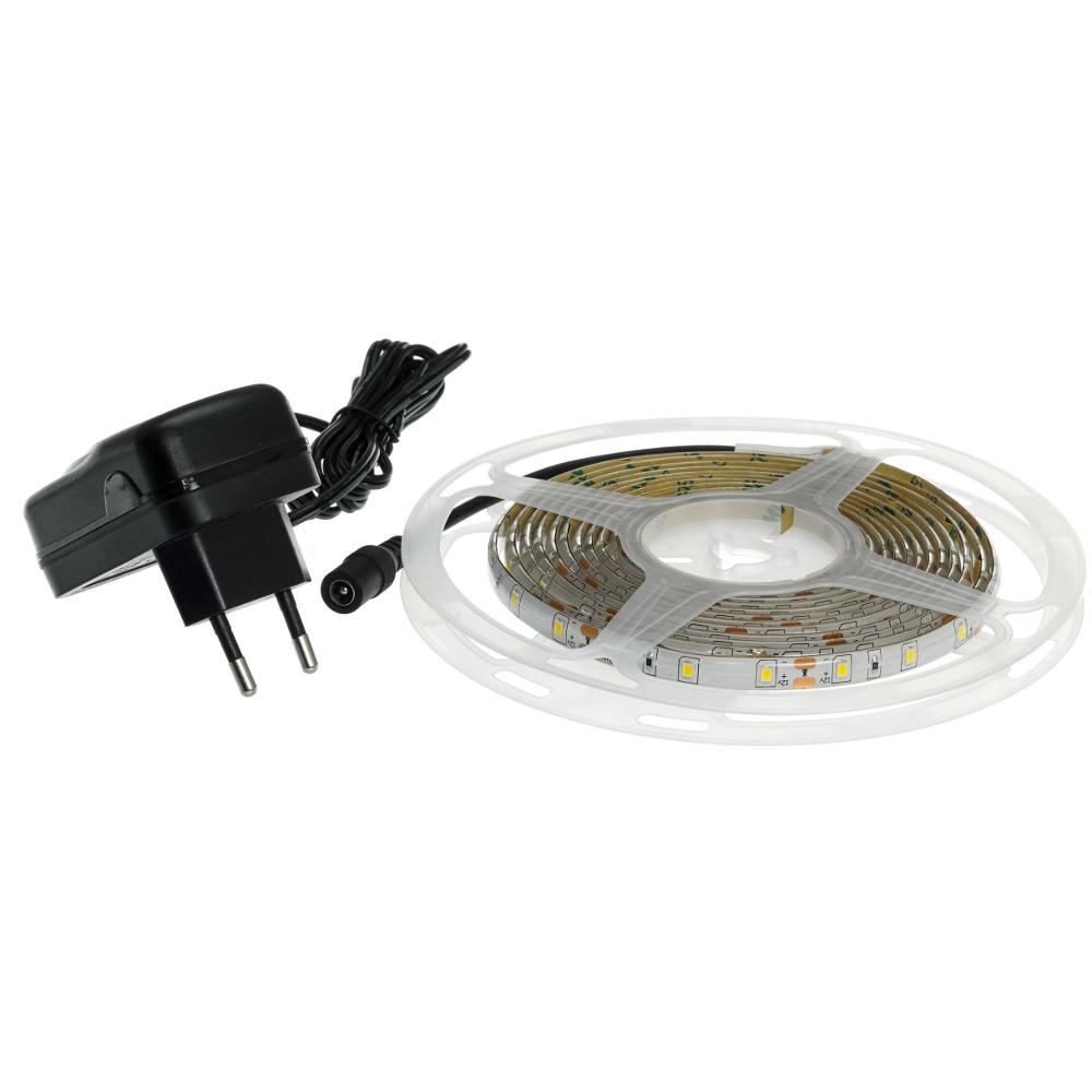 Self-adhesive, 3m long LED strip with a power adaptor, warm white