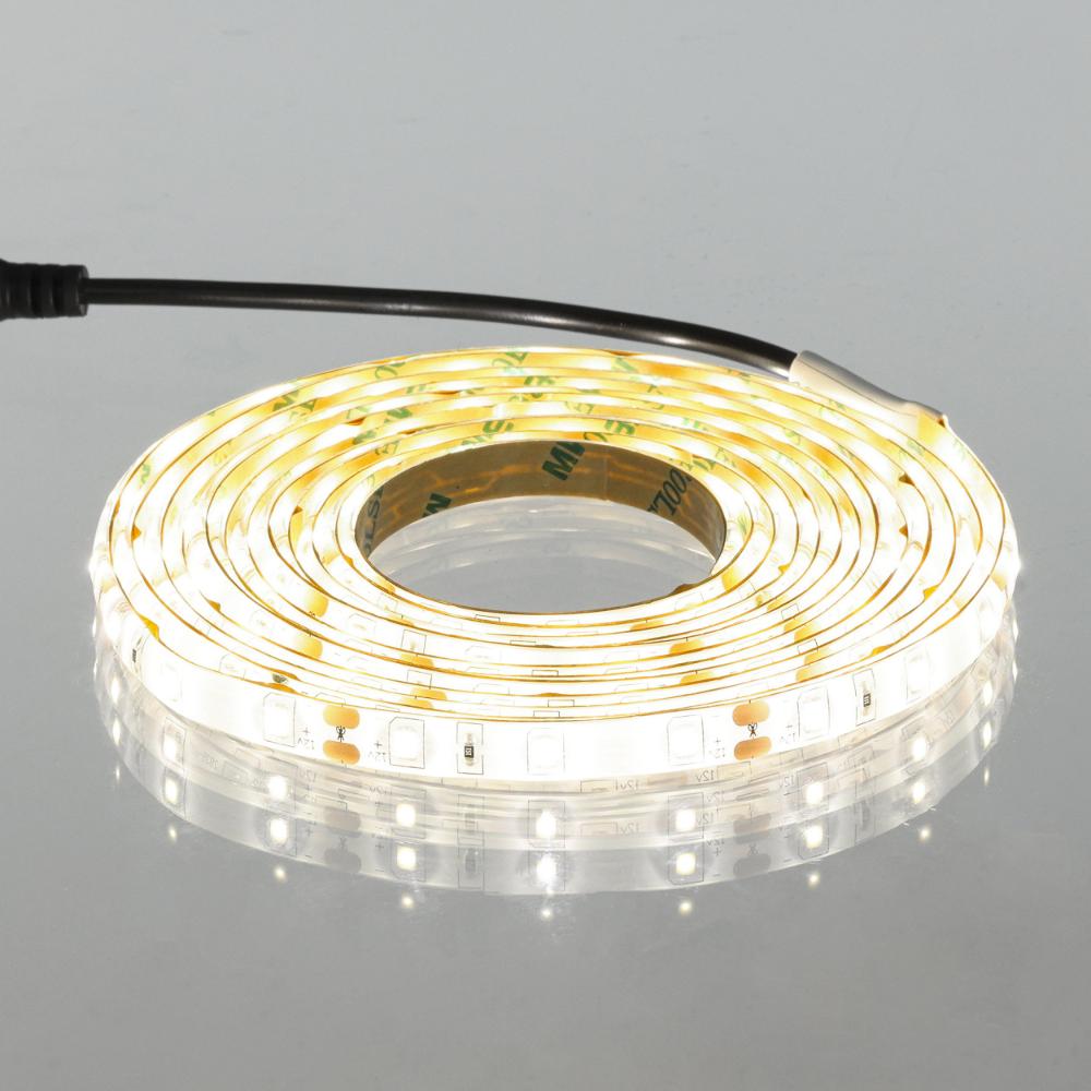 White 3m long LED strip with a power adaptor. Ideal for various decorative illuminations, backlighting of kitchen counters, bars, soffits, furniture etc. Easy installation will take just a few minutes. All accessories you need is included in the package. The strip can be shortened with scissors in indicated sections to reach necessary length. The package contains a complete set including the power adaptor, no further accessory is needed. Just shorten, stick, turn on the adaptor and connect. Done! The stick emits calm, warm white shade of light free of flicker. High luminous flux of 863lm Also, the 12V DC operating voltage enables connection to a car on-board electrical system. (backlight of motor homes, van car cargo space etc.)