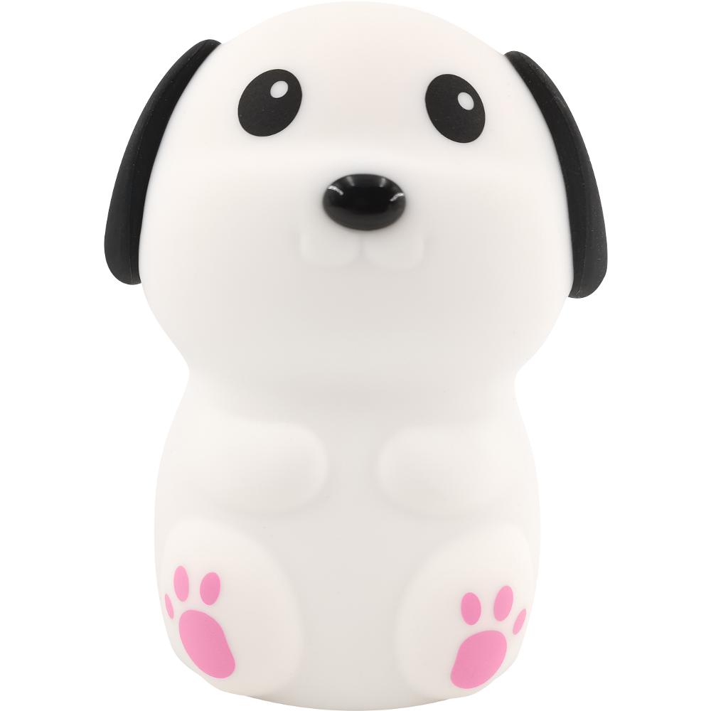 A dog-shaped night light for children with the function of dimming and the possibility of changing the light color. It shines beautifully with evenly distributed softly diffused light and is made of soft silicone.