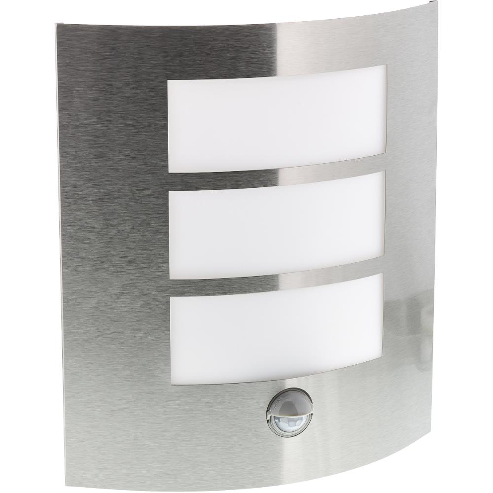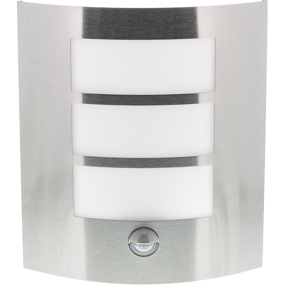 Universal outdoor luminaire with a classic E27 socket and a motion sensor.Stainless steel design ensures long life of the luminaire. This wall