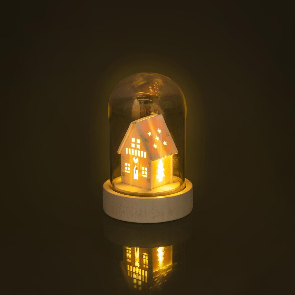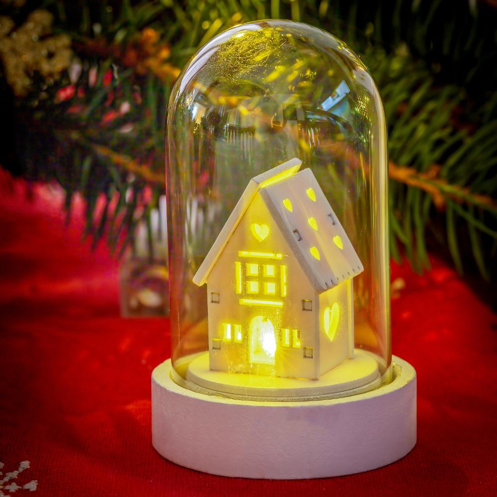Christmas glass dome with wooden decor