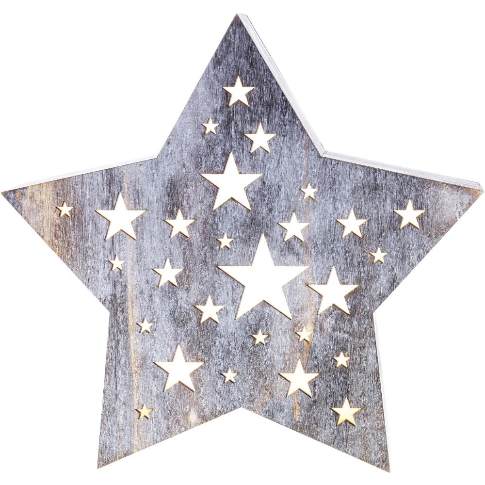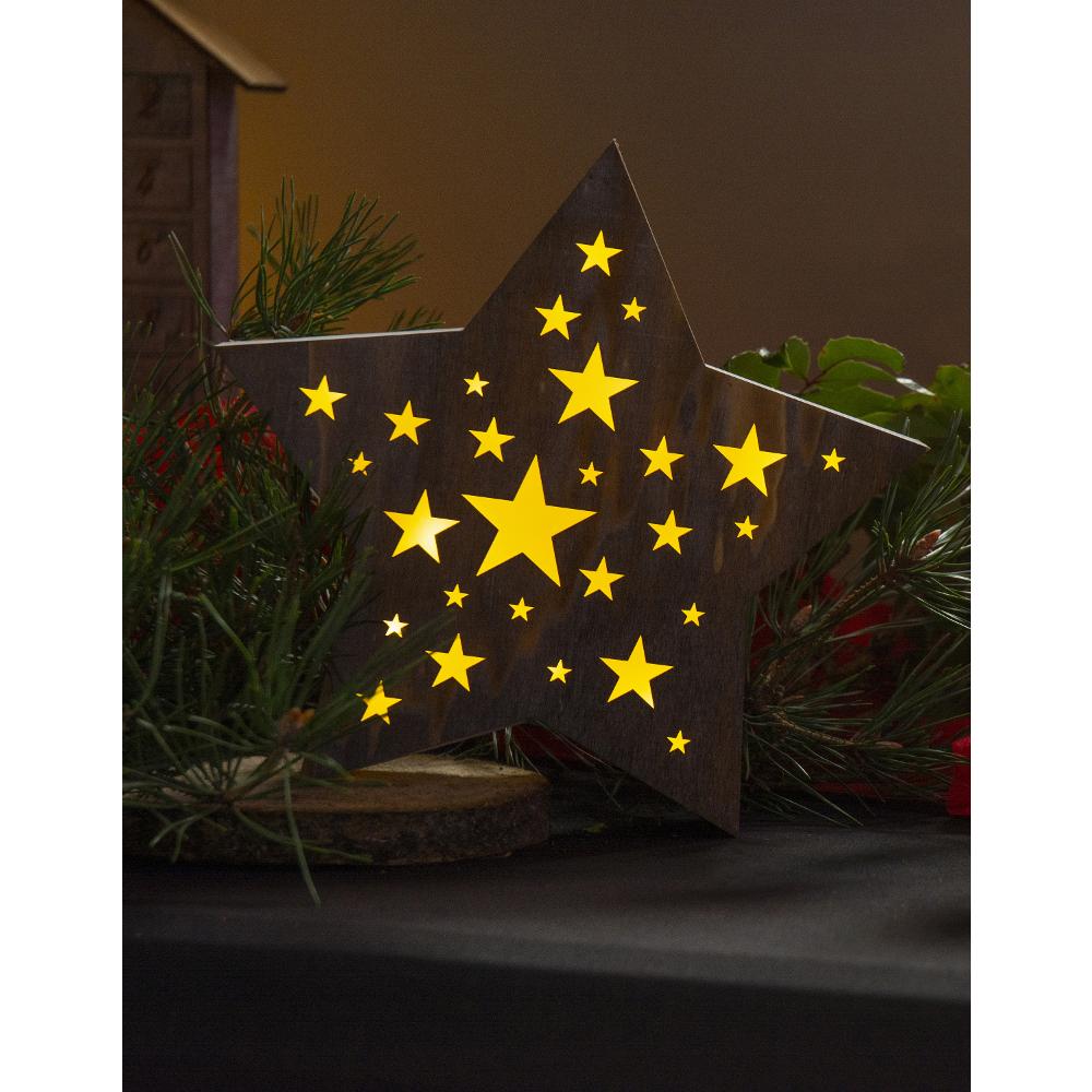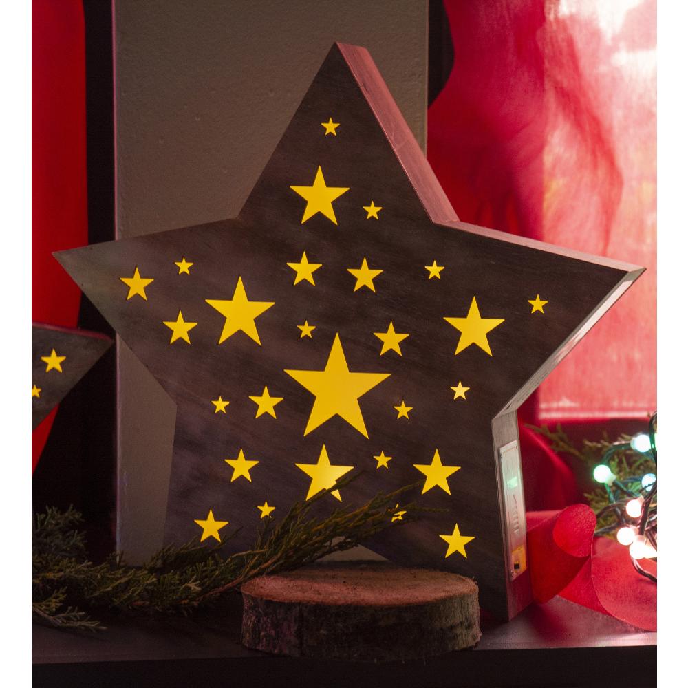 Christmas Decoration - wooden star with perforations of star-shape