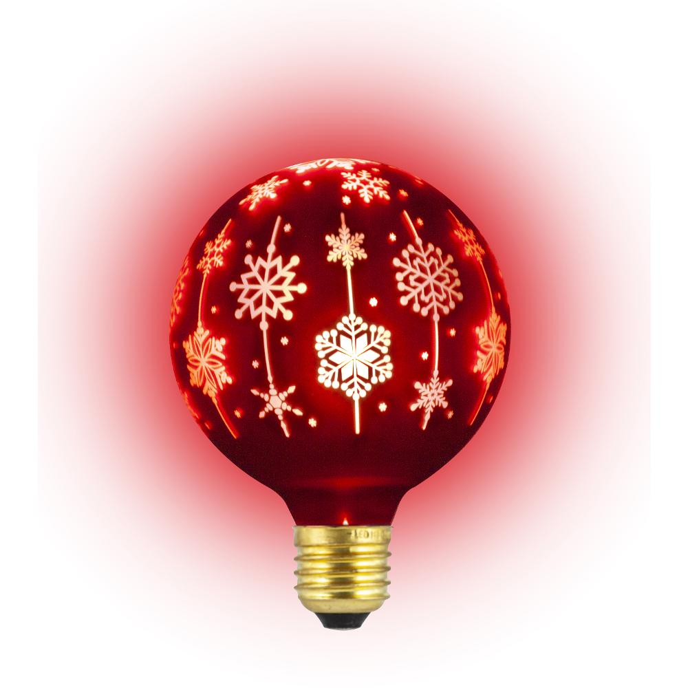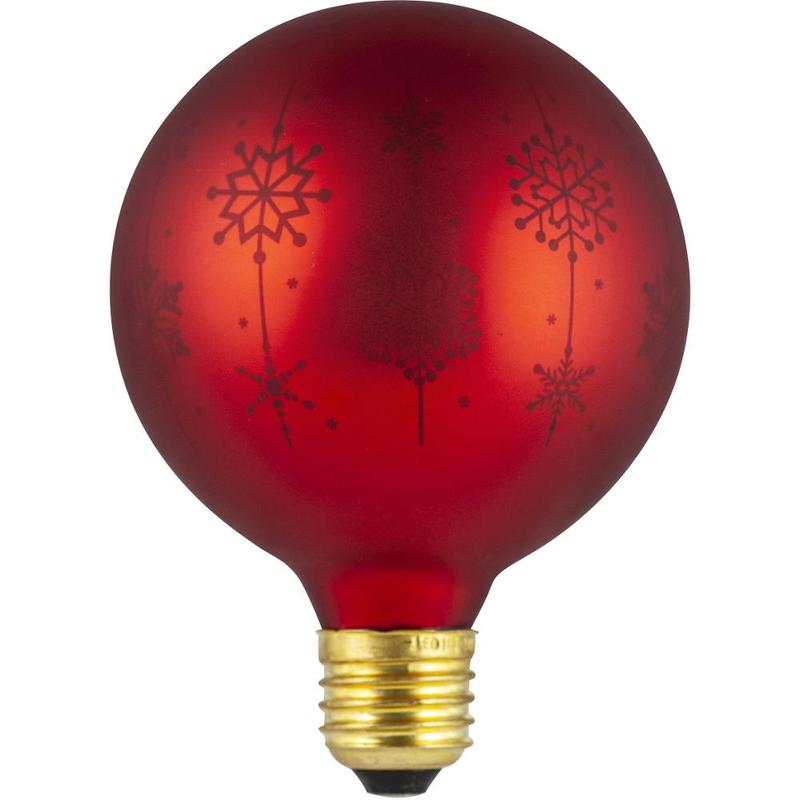 Red Xmas LED bulb, laser engraved with Christmas motifs. Ideal for conjuring up the real Christmas atmosphere.