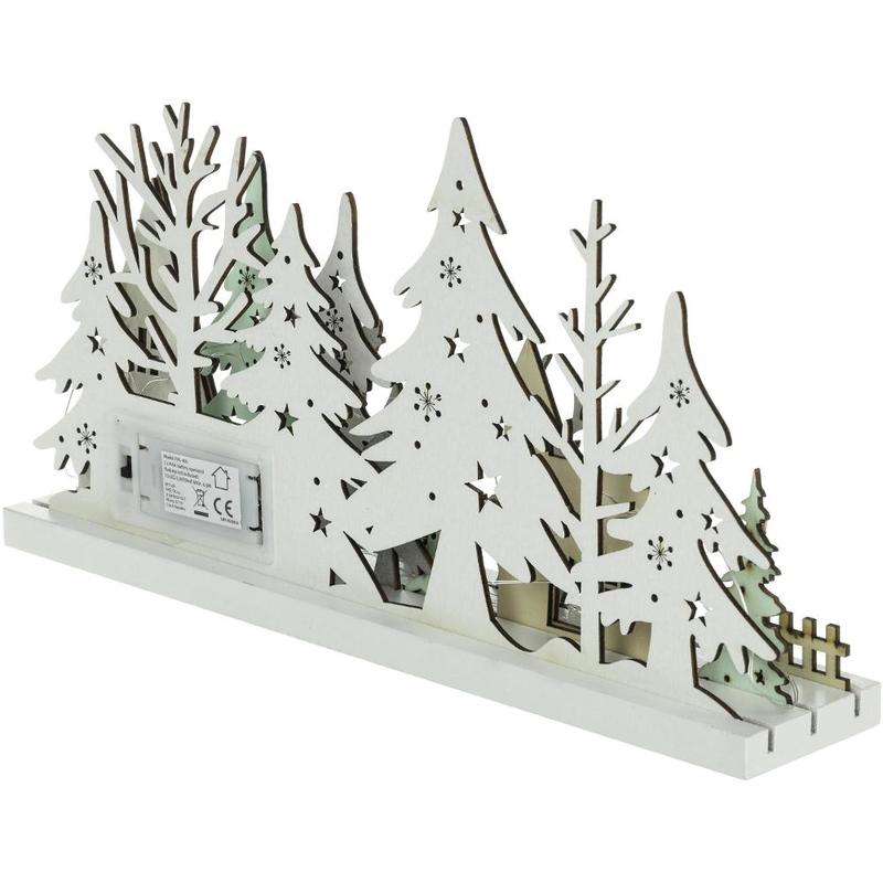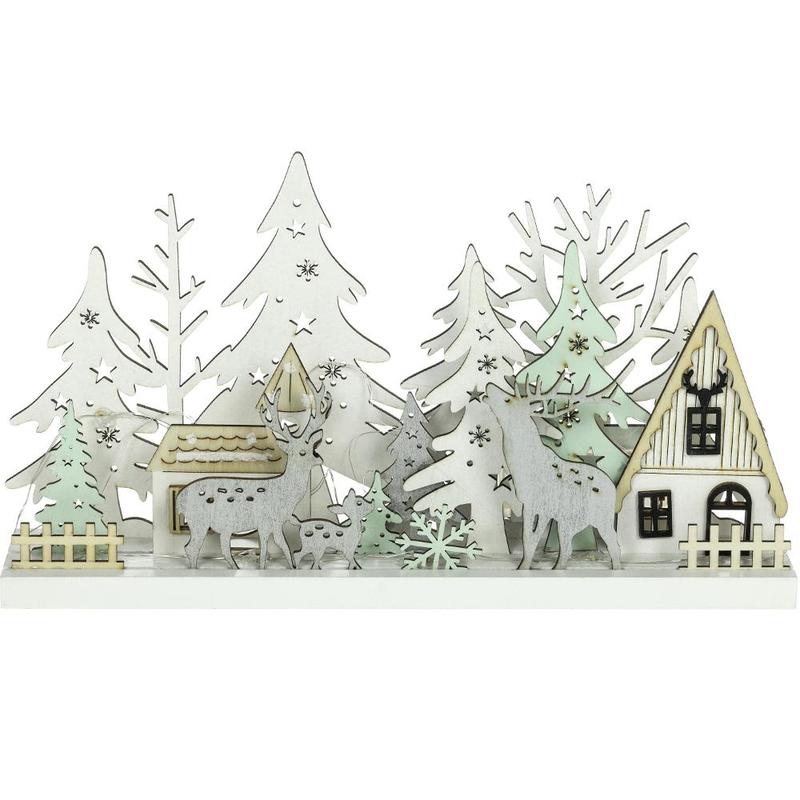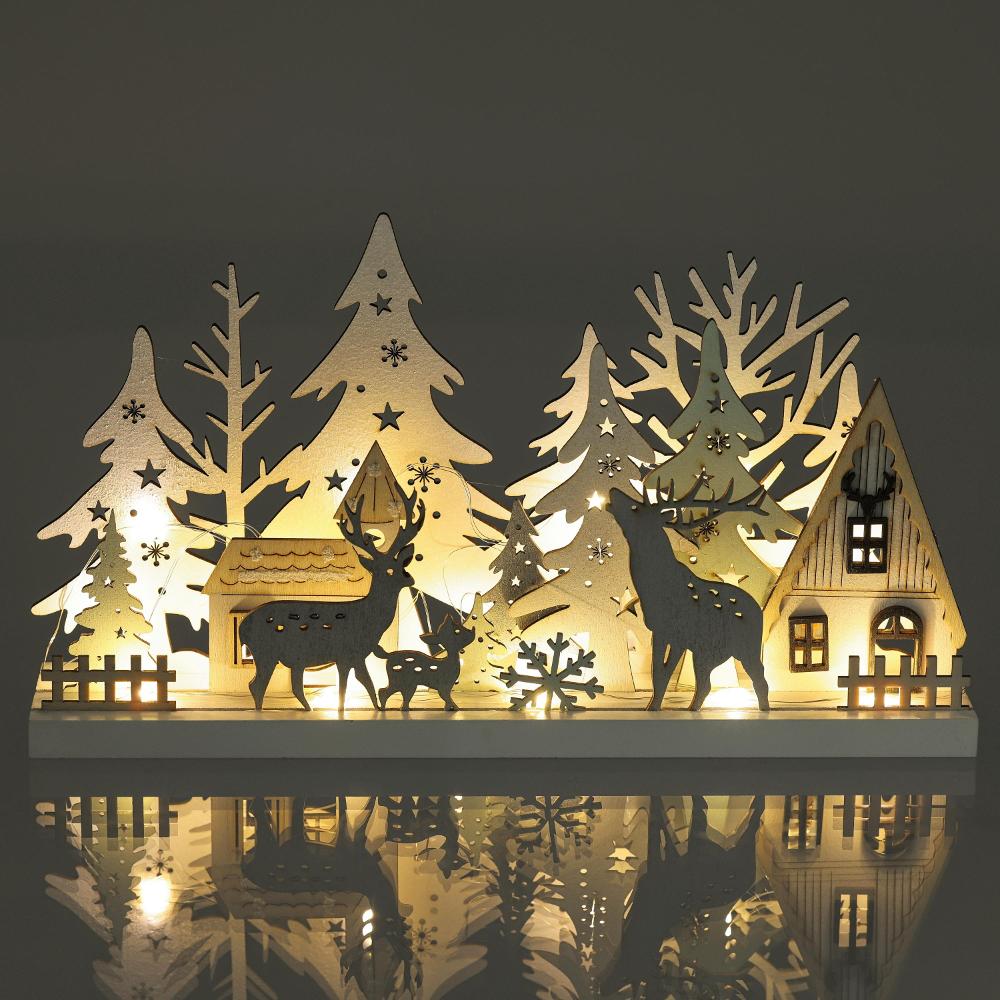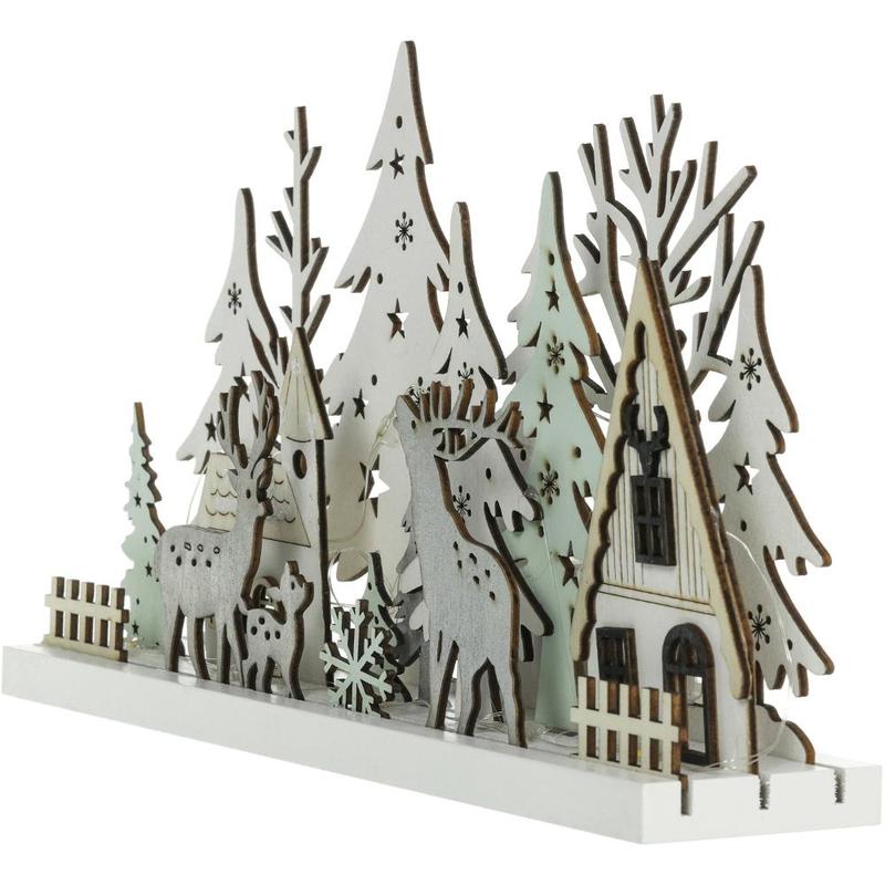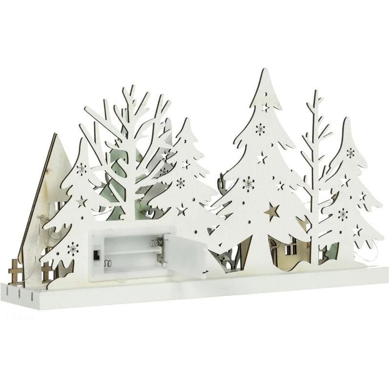 RXL 466, wooden Christmas decoration in the form of a snowy winter forest, brings the beauty of nature right into your home. You can enjoy various deer, trees and a picturesque lodge in your home or apartment. The lighting is provided by 15 LED lights in a pleasant warm white colour. Thanks to its dimensions of 33 x 5.8 x 16.5 cm, it will easy find its place and become an unmissable accessory.