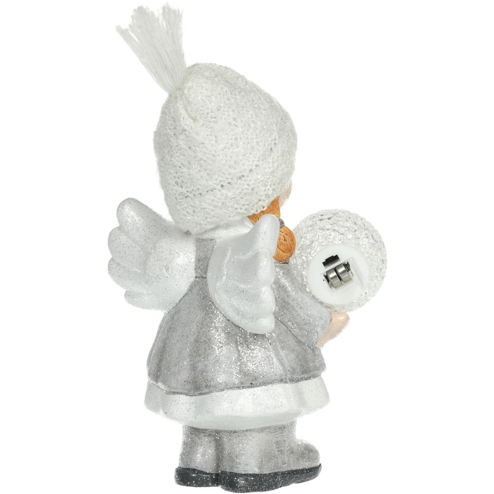 The angel from ceramics with snowball in the hand. After power on the snowball light up with 1 LED light in warm white colour. Size 12,8 x 11,5 x 21 cm. 2 LR44 batteroes are included. Use only indoor.