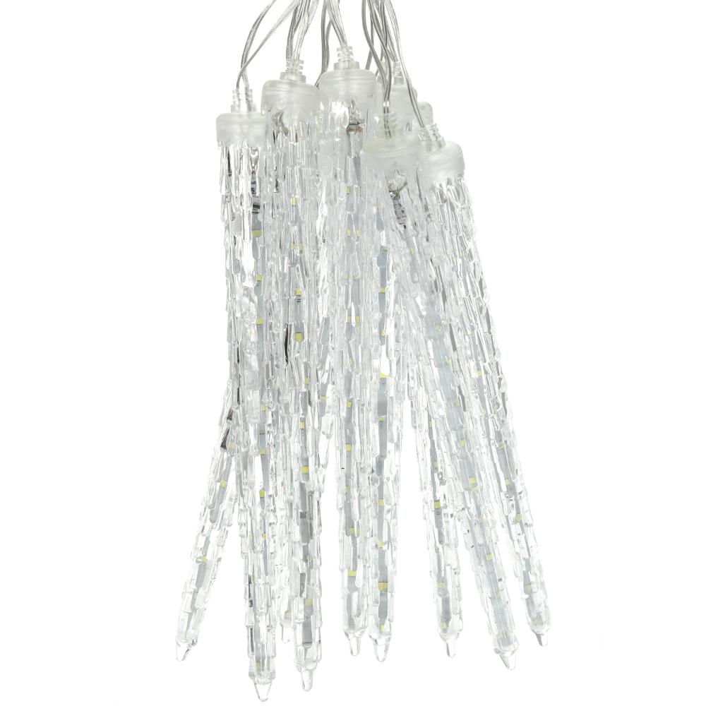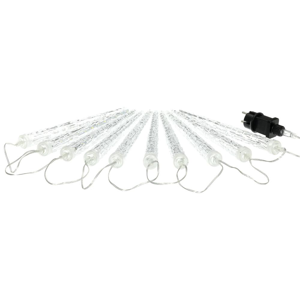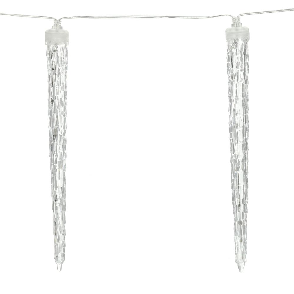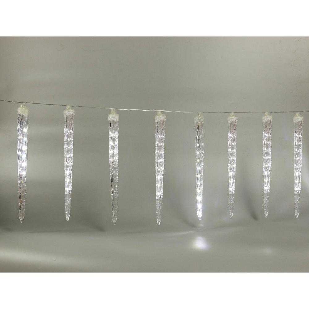 10 acrilic icicles with lengt 28 cm and 22 LED light in cold white colour. Length of lighting part 1,8 m and 5 m power cord in transparent colour. Use indoor and outdoor.