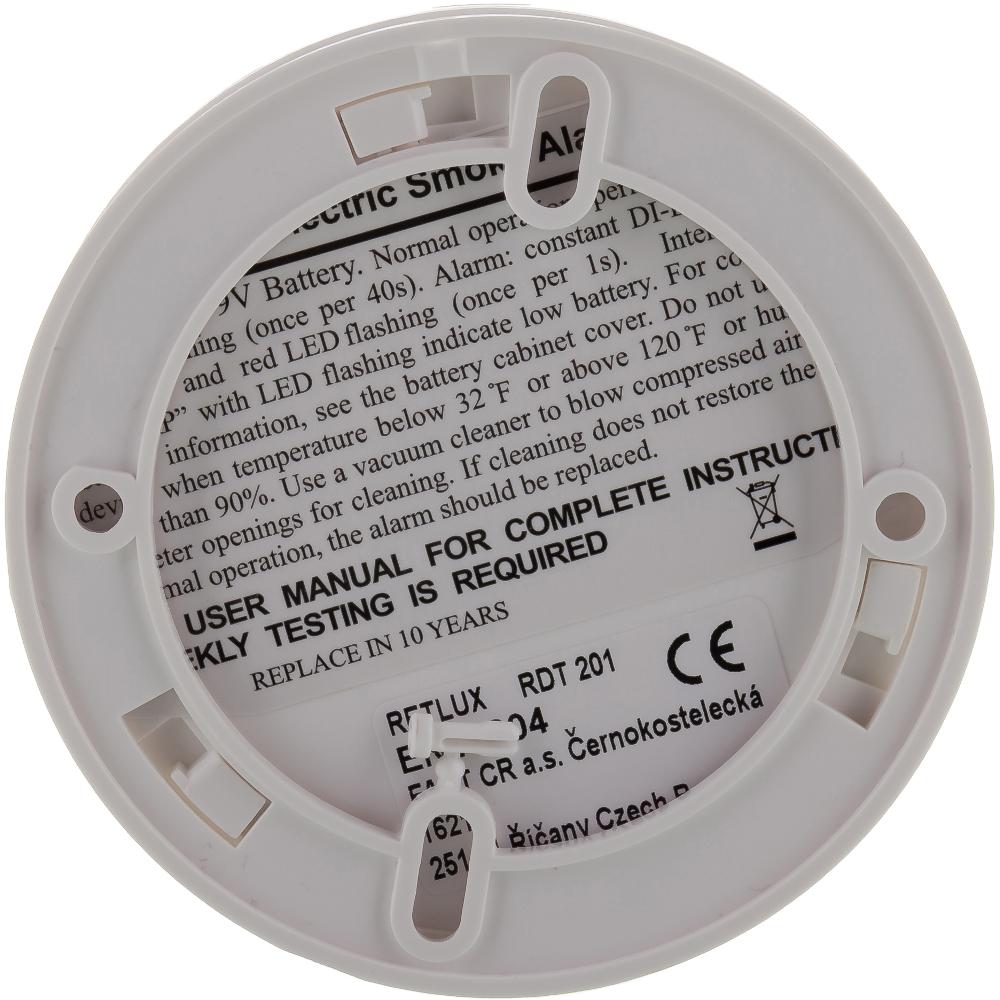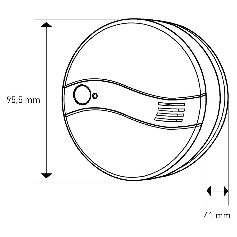 Smoke detector: as soon as smoke reaches the sensor, the detector sounds the alarm. The device can also be used as an independent detector without having to be connected to an alarm system. The sensor is powered by a 6F22 9V battery. The sensor indicates a low battery level. Assembly: The smoke detector is installed in the middle of the room on the ceiling or at lease 1 meter from the wall. The quick-coupling base is screwed onto the ceiling material.