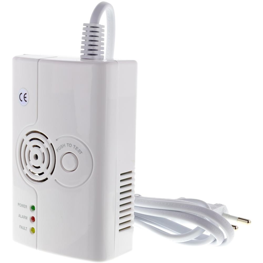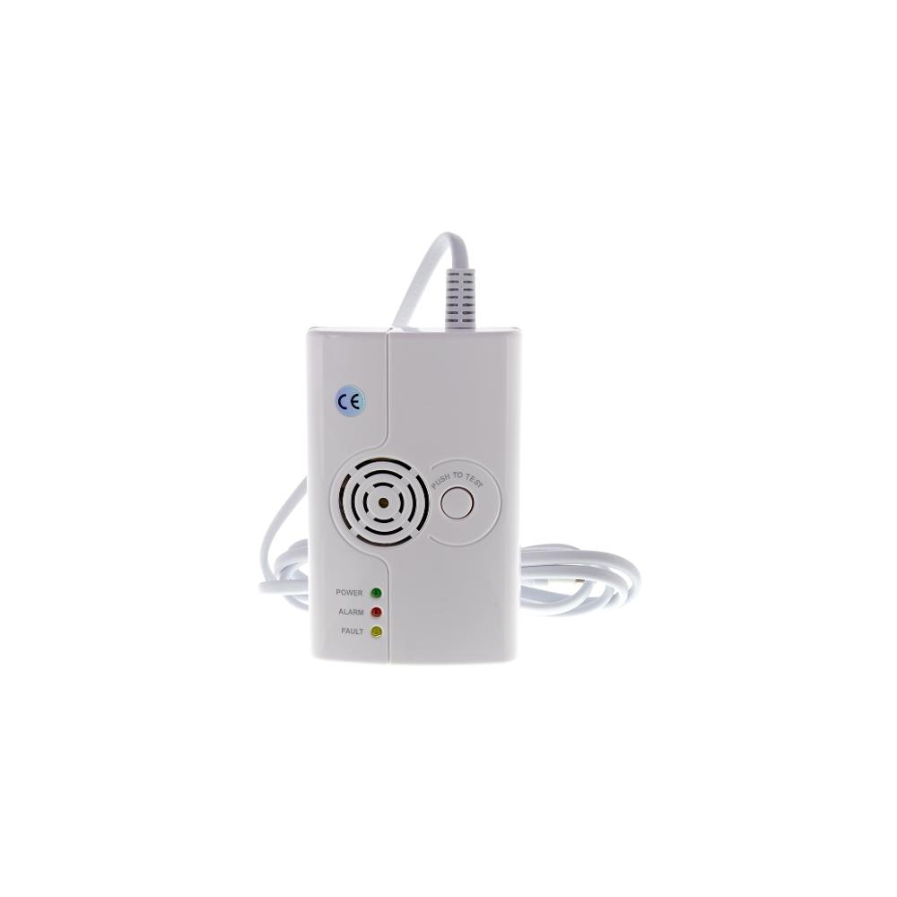 The gas detector also serves as a GSM alarm with integrated siren. It detects the presence of LP gas (propane-butane), coal gas and natural gas, noise level 85db/3m.