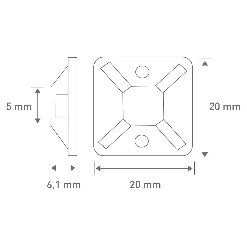 Self-adhesive fitting for zip ties, fitting dimensions 20x20mm, package contains 50 units