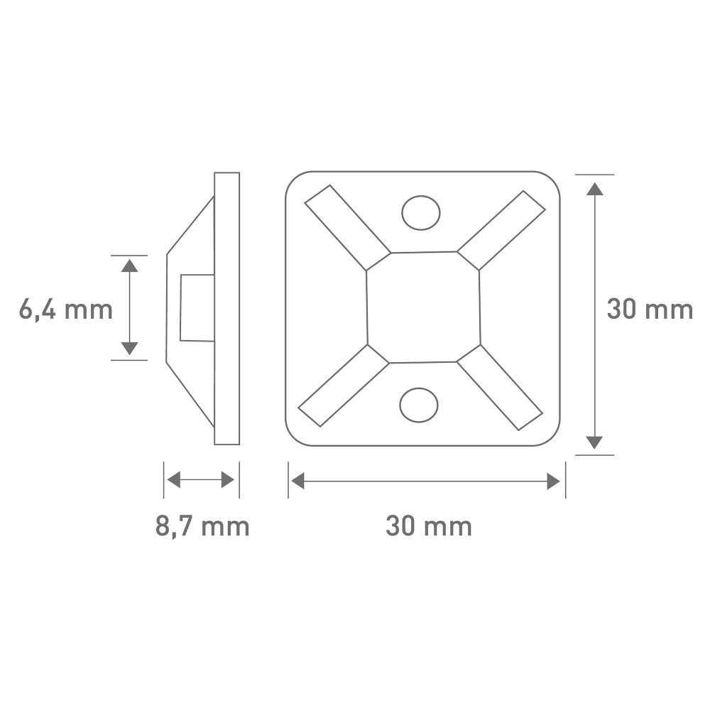 Self-adhesive fitting for zip ties, fitting dimensions 30x30mm, package contains 50 units
