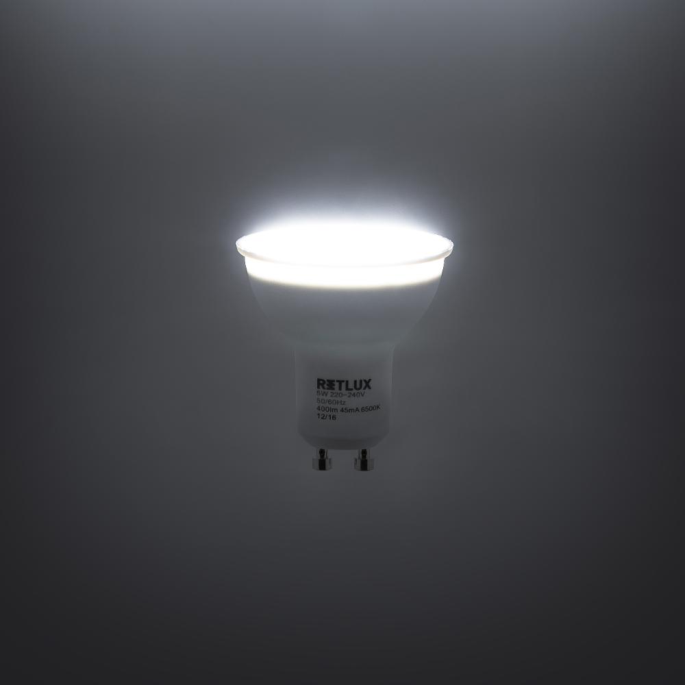 The Retlux reflector LED bulbs for the GU10 socket are most often used in false ceilings, spot lights and bathrooms. They are smaller bulbs that reliable enlighten a minor area or a larger room when multiple are used. You can choose from several versions, 3 W to 9 W, representing 25 W to 50 W in incandescent bulbs.
