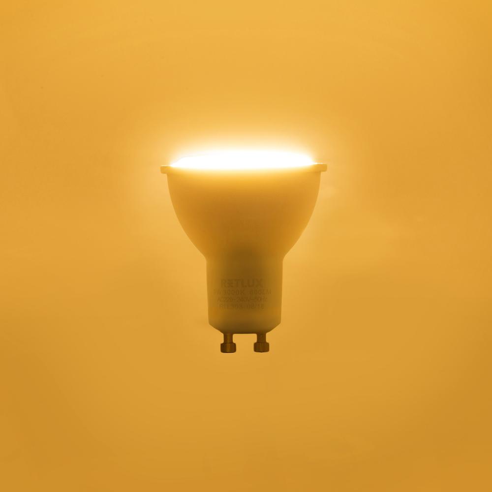 The Retlux reflector LED bulbs for the GU10 socket are most often used in false ceilings, spot lights and bathrooms. They are smaller bulbs that reliable enlighten a minor area or a larger room when multiple are used. You can choose from several versions, 3 W to 9 W, representing 25 W to 50 W in incandescent bulbs.