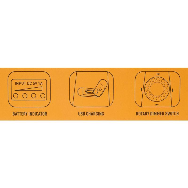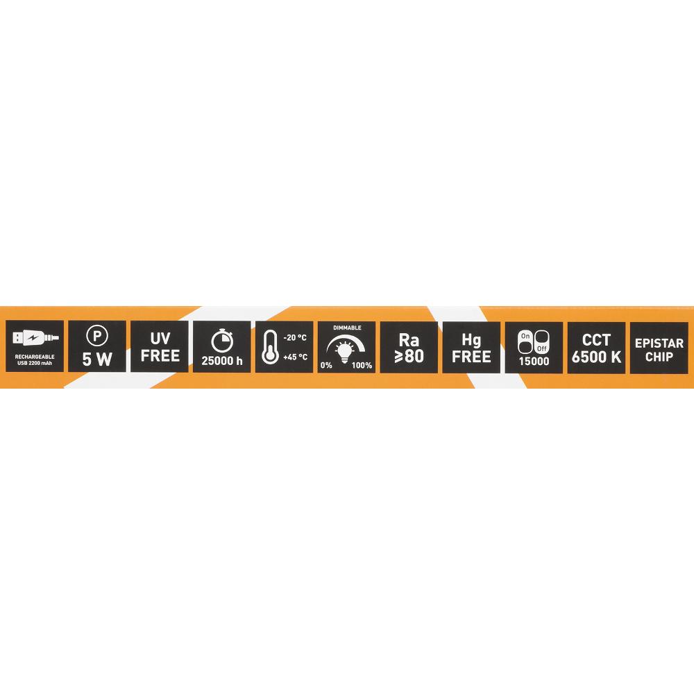 Practical and compact worklight with innovative dimming function and integrated battery. No more glare to the user due the proximity of the