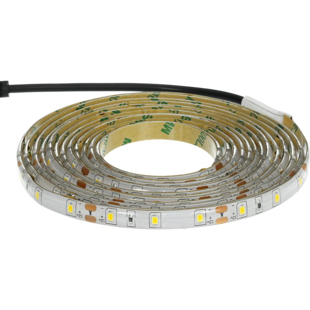 White 3m long LED strip with a power adaptor. Ideal for various decorative illuminations, backlighting of kitchen counters, bars, soffits, furniture etc. Easy installation will take just a few minutes. All accessories you need is included in the package. The strip can be shortened with scissors in indicated sections to reach necessary length. The package contains a complete set including the power adaptor, no further accessory is needed. Just shorten, stick, turn on the adaptor and connect. Done! The stick emits calm, warm white shade of light free of flicker. High luminous flux of 863lm Also, the 12V DC operating voltage enables connection to a car on-board electrical system. (backlight of motor homes, van car cargo space etc.)