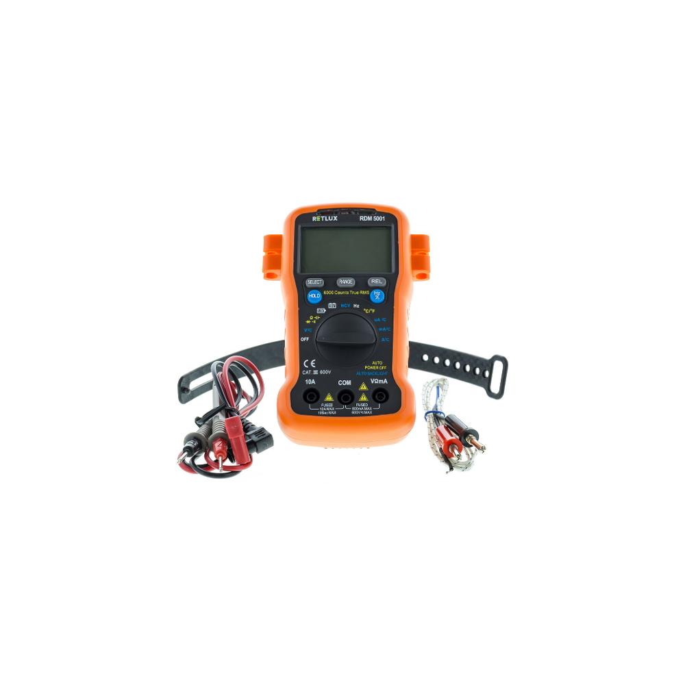 Compact size, stable performance and a display with great readability. That is the definition of the Retlux TDM 5001 digital multimeter. The multimeter handles all electrical quantities and features the NCV function. This function enables contactless testing of AC voltage, something that many electricians will appreciate. The package also contains probes and a useful hand strap which use can use to avoid unintentional falls of the device.