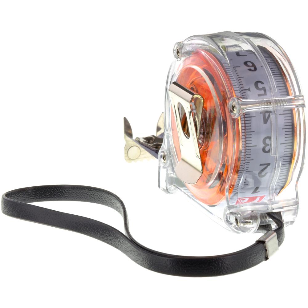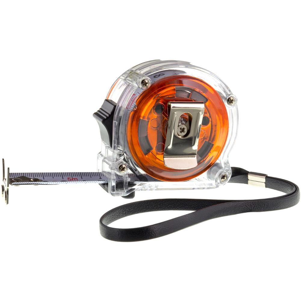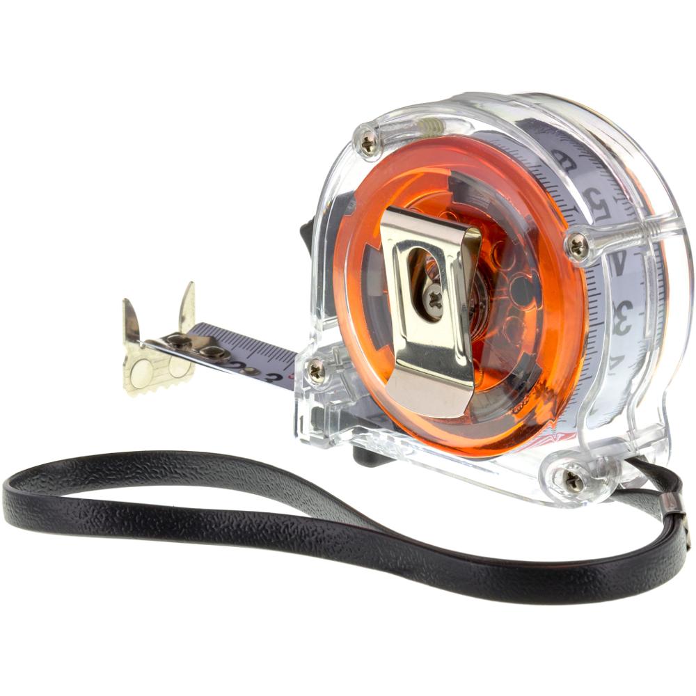 5m tape measure, transparent casing, two-sided scale, magnet end, anchoring clip,
